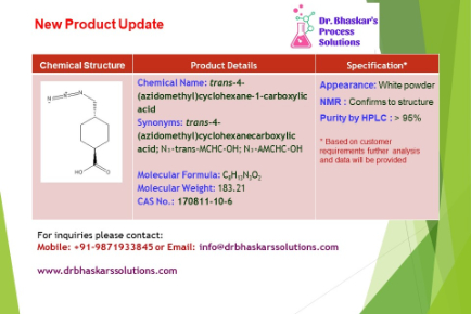 We’re pleased to announce the successful synthesis of trans-4-(azidomethyl)cyclohexanecarboxylic…